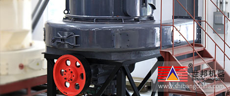 主機(ji)工(gong)作(zuo)過(guo)程(cheng)是電動機(ji)通(tong)(tong)過(guo)一副三角(jiao)帶輪帶動橫向(xiang)傳動軸轉(zhuan)動,橫向(xiang)傳動軸再通(tong)(tong)過(guo)另(ling)一端的(de)錐齒輪帶動主機(ji)主軸,主軸的(de)上端連(lian)接著磨(mo)(mo)(mo)(mo)輥吊(diao)(diao)架(jia),磨(mo)(mo)(mo)(mo)輥裝(zhuang)置通(tong)(tong)過(guo)橫擔軸吊(diao)(diao)裝(zhuang)在磨(mo)(mo)(mo)(mo)輥吊(diao)(diao)架(jia)上并形(xing)成擺動支點,其不僅(jin)圍繞軸回轉(zhuan),同時在離心力的(de)作(zuo)用下(xia)磨(mo)(mo)(mo)(mo)輥沿著磨(mo)(mo)(mo)(mo)環(huan)內(nei)圓滾動,磨(mo)(mo)(mo)(mo)輥本(ben)身因摩擦作(zuo)用而(er)自轉(zhuan)。磨(mo)(mo)(mo)(mo)輥吊(diao)(diao)架(jia)下(xia)端裝(zhuang)有鏟刀(dao)架(jia),鏟刀(dao)架(jia)的(de)下(xia)法蘭(lan)上裝(zhuang)有傾斜的(de)鏟刀(dao),鏟刀(dao)的(de)前端接近磨(mo)(mo)(mo)(mo)室襯板,后(hou)端位于磨(mo)(mo)(mo)(mo)輥與(yu)磨(mo)(mo)(mo)(mo)環(huan)形(xing)成的(de)楔形(xing)間隙內(nei),鏟刀(dao)與(yu)磨(mo)(mo)(mo)(mo)輥同轉(zhuan)過(guo)程(cheng)中(zhong)把物料鏟拋喂入(ru)磨(mo)(mo)(mo)(mo)輥磨(mo)(mo)(mo)(mo)環(huan)之(zhi)間而(er)被擠壓、碾碎(sui)。從磨(mo)(mo)(mo)(mo)環(huan)底部進入(ru)磨(mo)(mo)(mo)(mo)腔的(de)氣流將(jiang)小(xiao)顆粒粉(fen)(fen)料帶入(ru)選(xuan)粉(fen)(fen)機(ji),由此而(er)達到制(zhi)粉(fen)(fen)目的(de)。